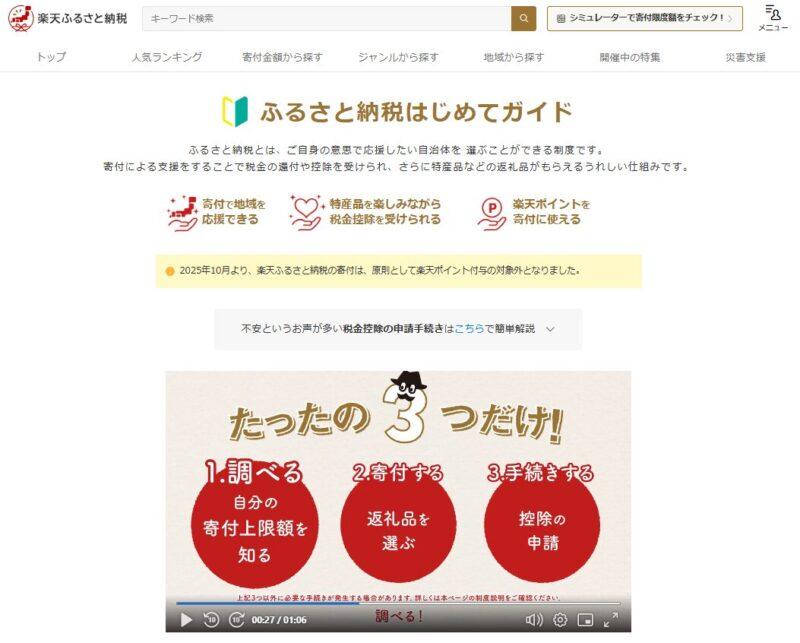 2025年10月以降、楽天ふるさと納税の寄付は楽天ポイント付与の対象外になりました。